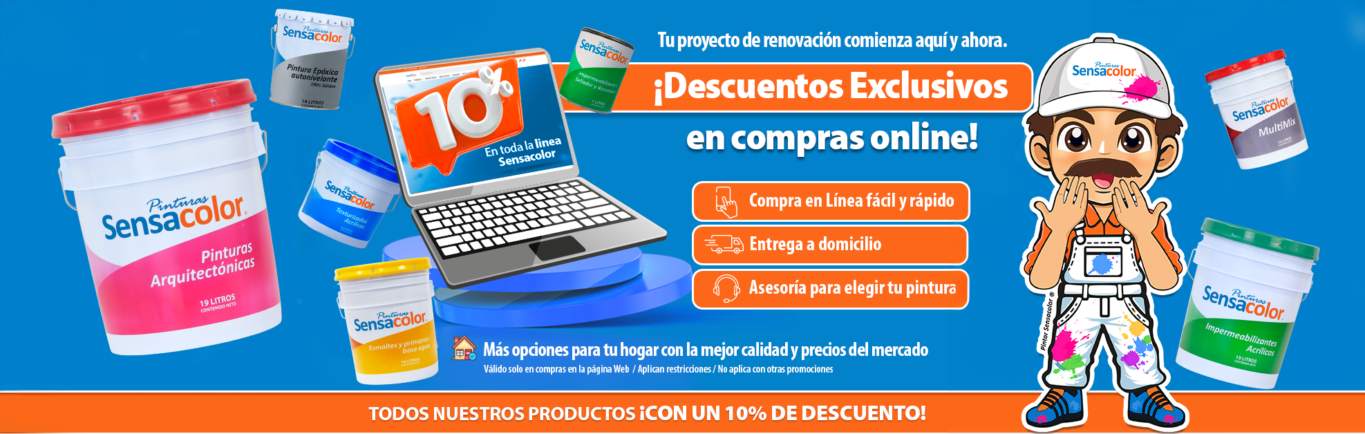 Da click en el Pintor Sensacolor flotante del sitio web , está disponible para ayudarte con cualquier soporte que necesites