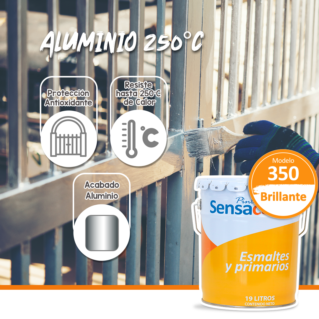 Pintura de aluminio fabricada con resinas alquidáles sintéticas, aditivos y pigmentos de alta calidad con buena resistencia a la intemperie, al calor y a la oxidación. Posee un
